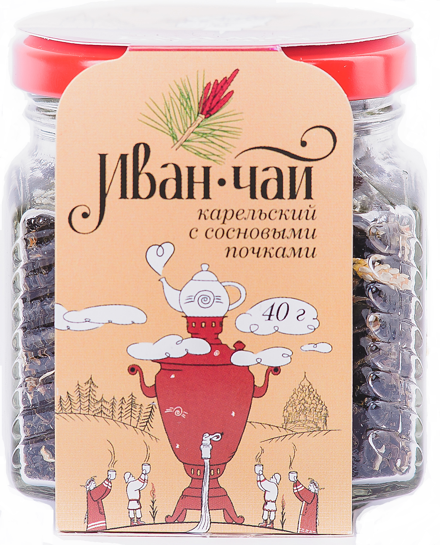 Напиток чайный "Иван-чай карельский" крупнолистовой с сосновыми почками, лесного сбора, контролируемый по месту происхождения - Республика Карелия, Суоярвский район. Стеклянная банка, 40 г.