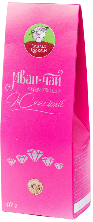 Напиток чайный "Иван-чай Женский с крымской розой и боярышником" крупнолистовой, лесного сбора, контролируемый по месту происхождения - Республика Карелия, Суоярвский район. Картонная коробка, полипропиленовый пакет с клеевым клапаном, 40 гр.